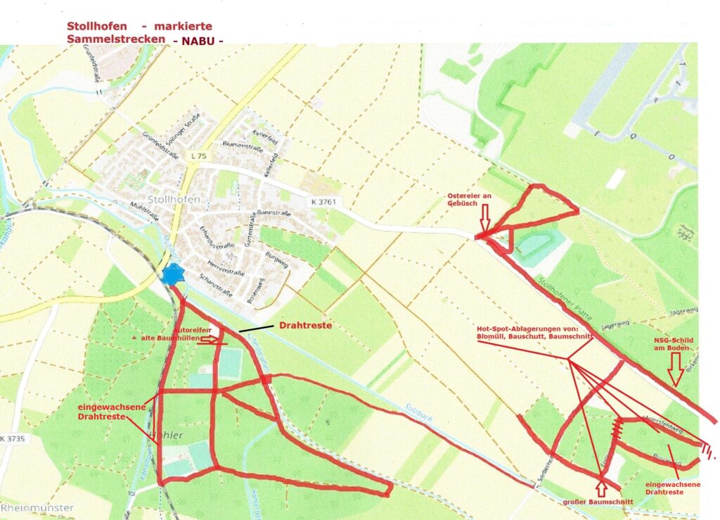 Mehrere Kilometer Wegstrecke lag hinter den wenigen Aktiven vom NABU lagen zurück, als am letzten Samstag im Bereich des Hohlerwaldes, im Hartunger Busch (Bosch) und entlang dem NSG „Stollhofener Platte“ mit der südlichen Einflugschneise rund 3 ½ Müllsäcke Kleinstmengen an Abfall aufgesammelt wurden.